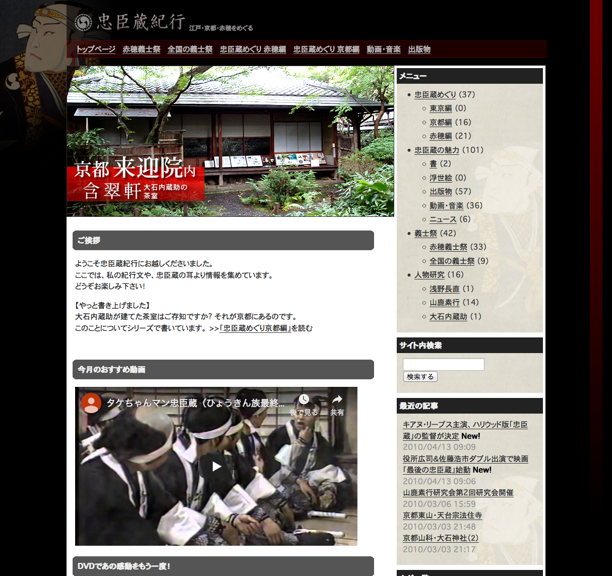 このサイト「忠臣蔵紀行」では、忠臣蔵にまつわる土地をめぐり、記事にしています。また忠臣蔵関連の情報を集めています。何かお気づきの点などがございましたら、お気軽にご一報下さい。